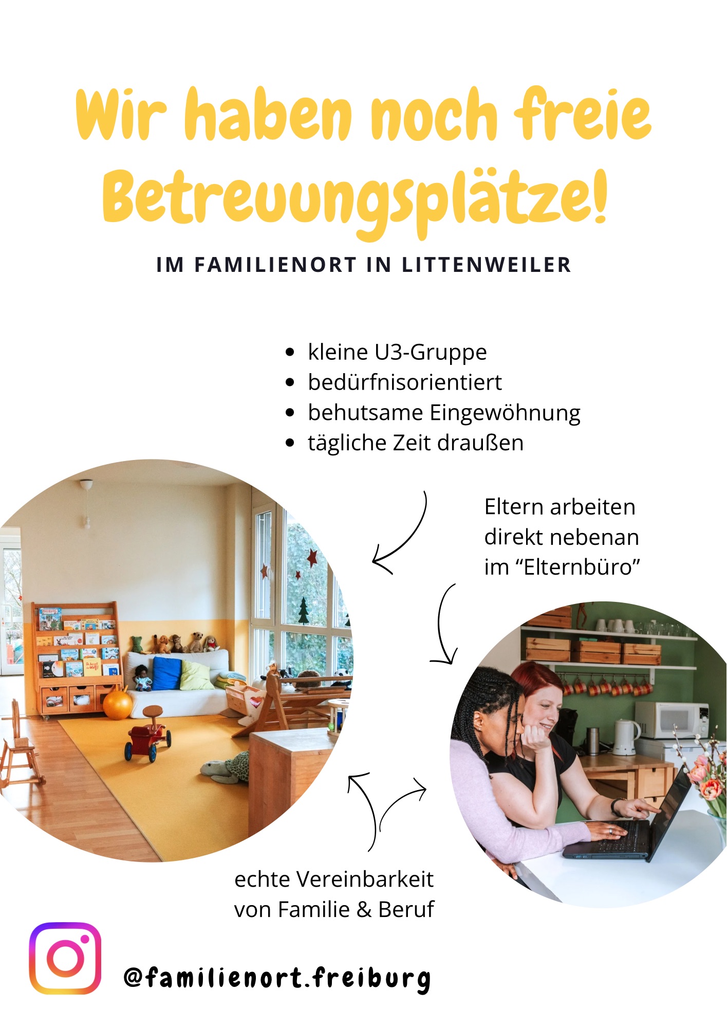 In unserer kleinen U3-Gruppe (18–36 Monate) im Familienort Littenweiler sind aktuell Plätze frei.